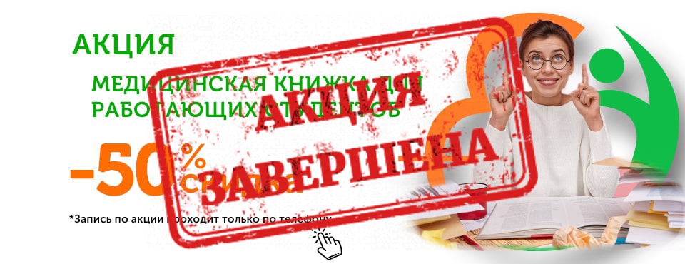 Медицинская книжка для работающих студентов со скидкой 50%!